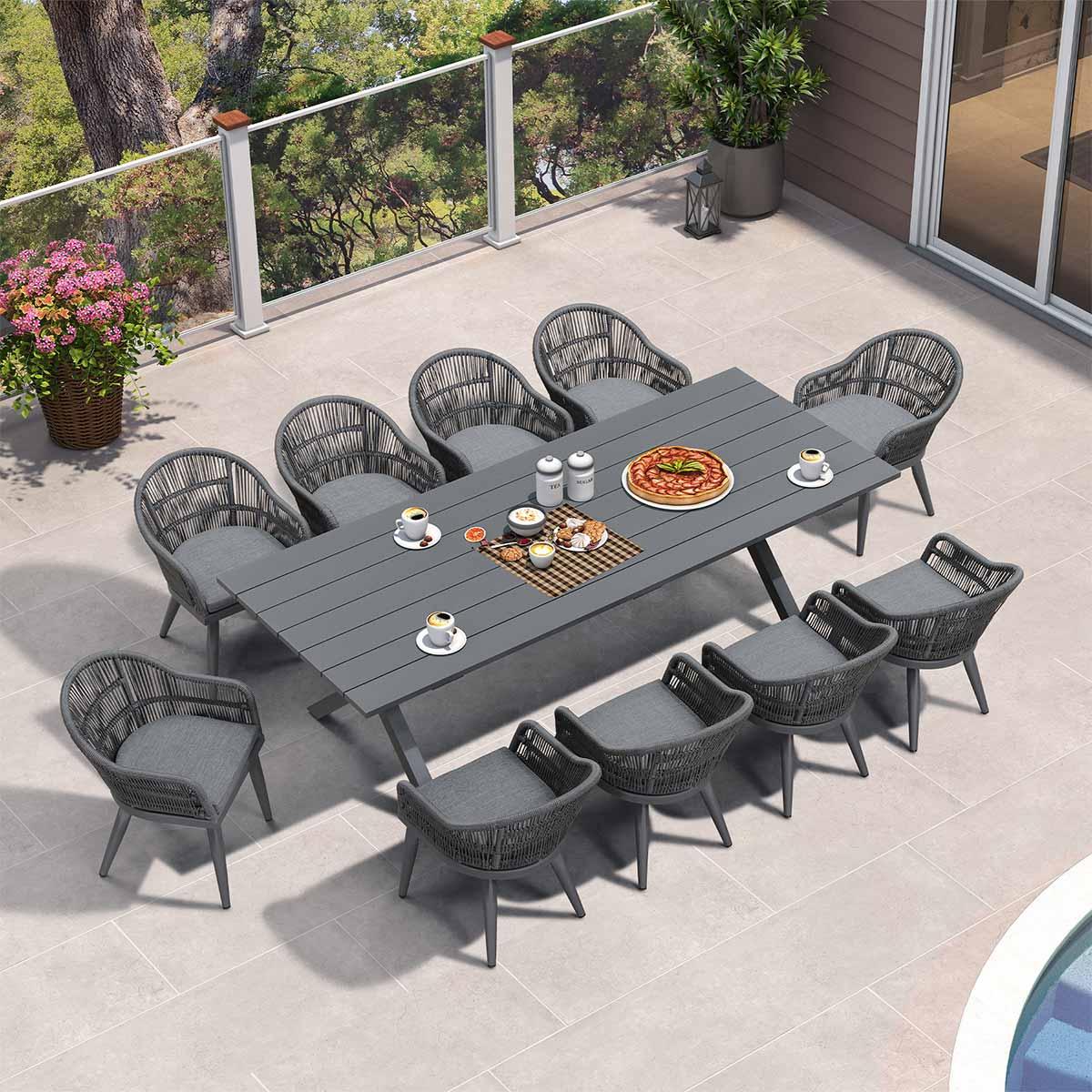 PURPLE LEAF 7/9/11 Pieces Patio Dining Set with Weather-Resistant Dining Table and Chairs Wicker Patio Table Set with Comfortable Cushion for Deck, Garden, Kitchen, Grey