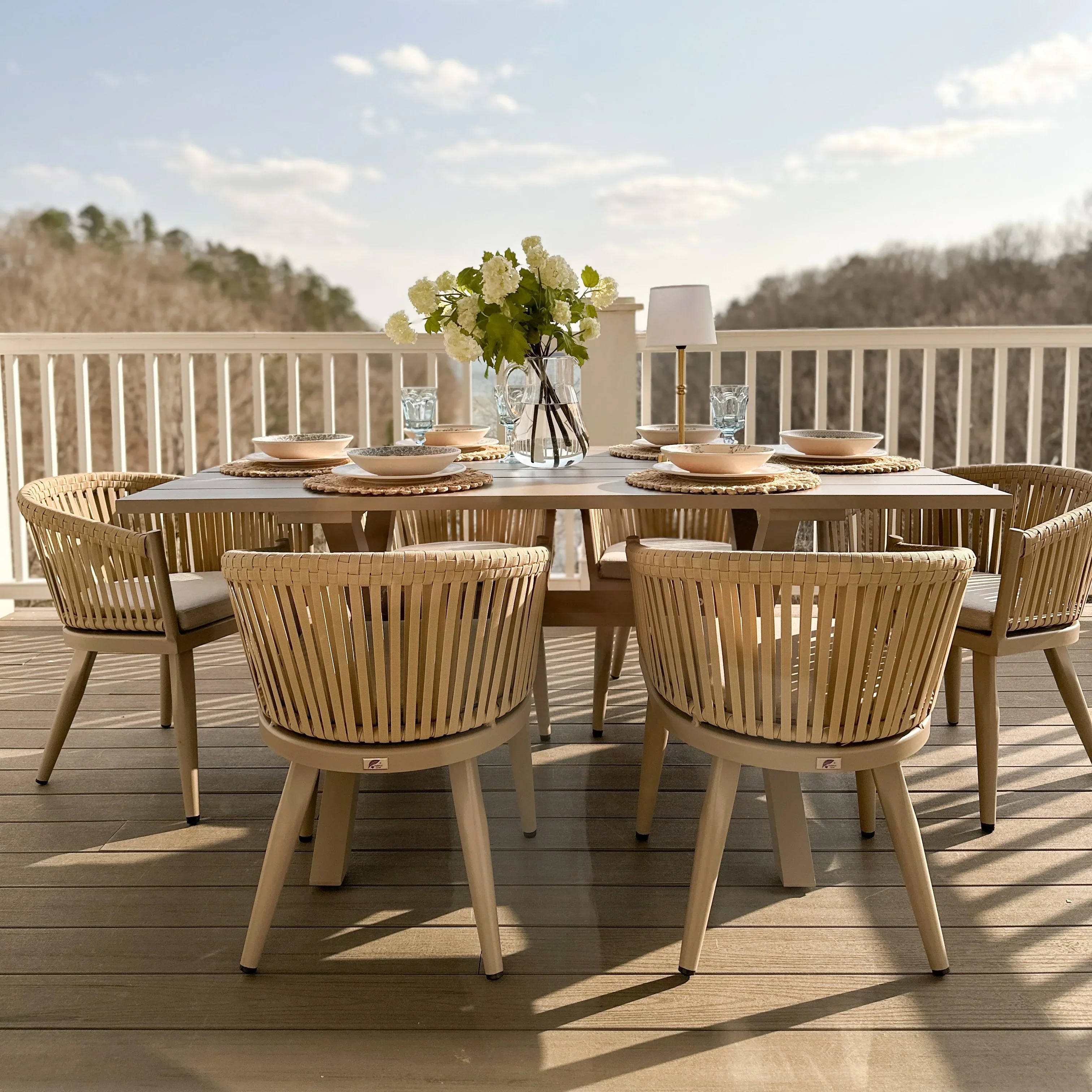 [ Sturdy Aluminum Frame ] With an aluminum frame, this outdoor dining set provides exceptional stability and durability. The lightweight yet robust design ensures that the set remains solid and reliable for years to come.