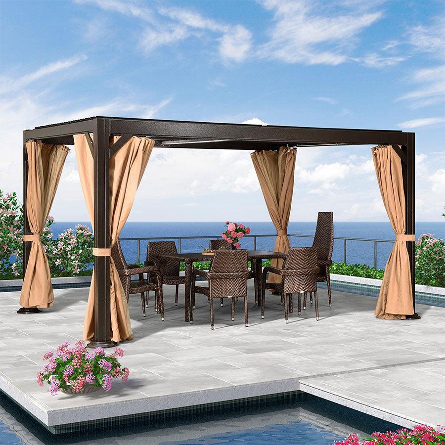 · Independent Adjustable Aluminum Louvered Roof: Designed with independent adjustable roofs,equipped with adjustable poles that allow you to adjust it effortlessly from 0° to 75°, Can cover up to 192 square feet of shade.